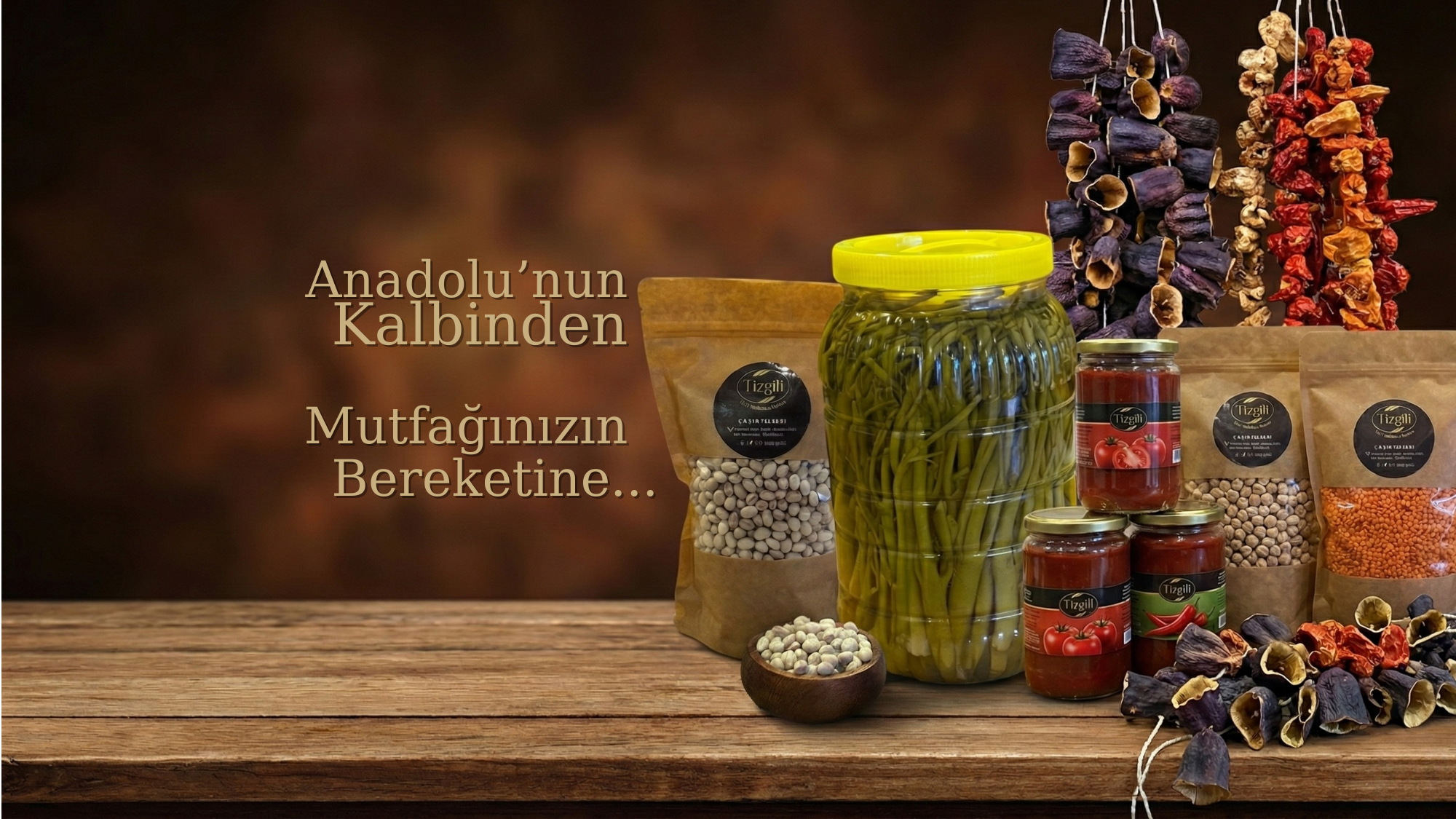 Antep patlıcan kurusu, biber kurusu ve Erzurum pancar kesme şekeri. Geleneksel yöntemlerle...